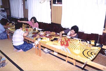 これは初公開、水引幕の製作現場です。